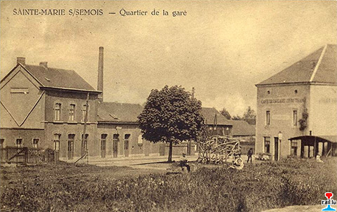 La première maison à gauche était l'habitation des soeurs, à gauche les voies du vicinal