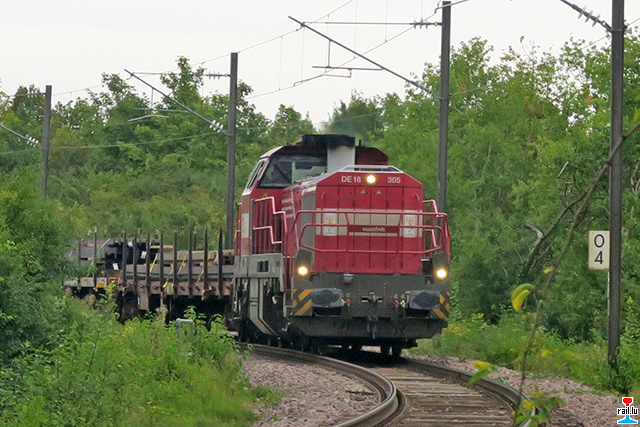 Wéinst Aarbechten un der Autobunnsbréck vun der A13 zu Schëffleng - D'DE 18 305 kënnt vu Schëffleng a fiert iwwert der Kurv tëscht dem Brucherbierg an dem Scheierbësch pk 0,4 op Käl (Photos: 10.9.2021 René Birgen)