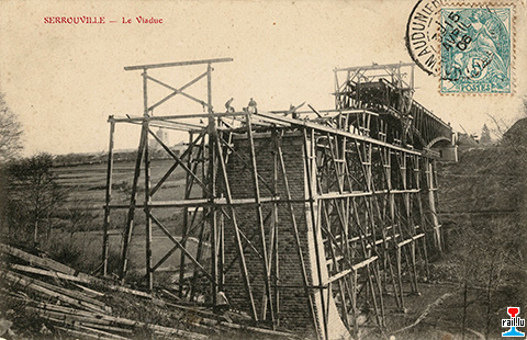 Le Viaduc de Serrouville en construction - vers 1906 (Carte postale: collection jmo)