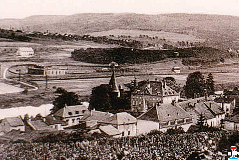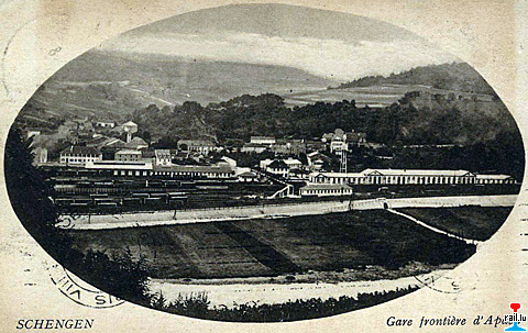 (Das Expeditionsgebäude von Apach war im Jahre 1928 durch die Unternehmer Gebrüder Schiltz aus Luxemburg erbaut worden. Viele Schengener hatten hier lohnende Beschäftigung gefunden.)