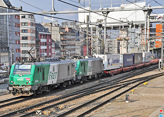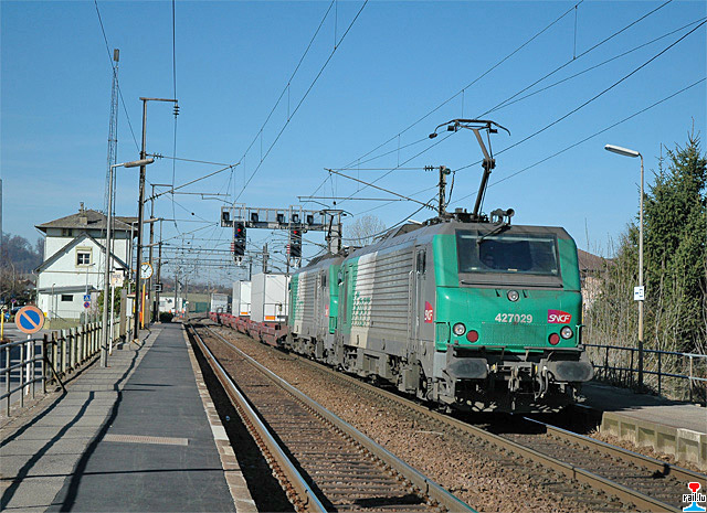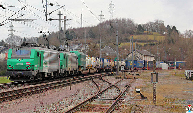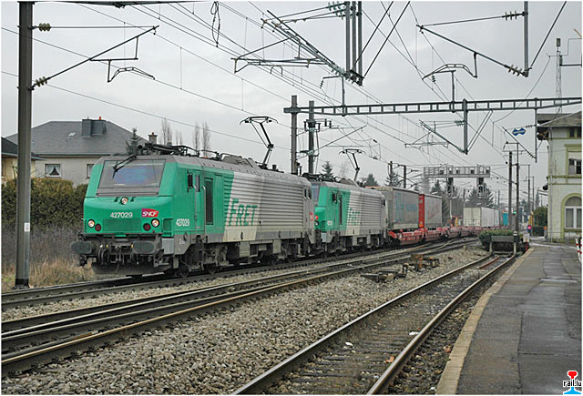 L'autoroute ferroviaire vu Le Boulou op Beetebuerg nees iwwer d'Linn 60 ëmgeleet ginn. Um Zuch, d'27026 an d'37036, hei zou Péiteng (Photos: 17.03.2012 Yves Gillander)