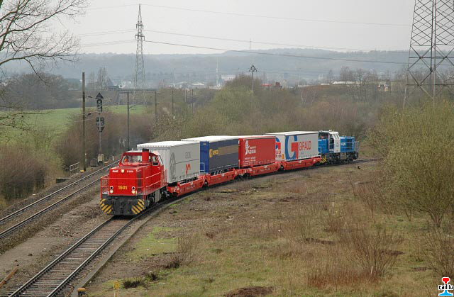 Ein kompletter Lorry-Rail - Zug besteht aus 20 Modalor - Doppelwagen und hat eine Länge (mit Lokomotive) von 680 m. Bei Ankunft eines Lorry-Rail Zuges wird zuerst die Streckenlokomotive abgehängt. Zum Endladen / Beladen zieht ein Rangierdiesel einen Halbzug mit 10