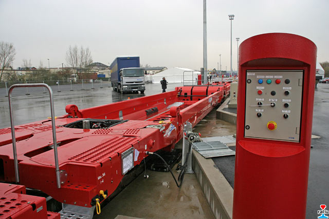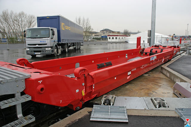 Chargement "en épi" des wagons Modalohr à plancher bas pivotant (Photo: 29.3.2007 Francis Wagner)