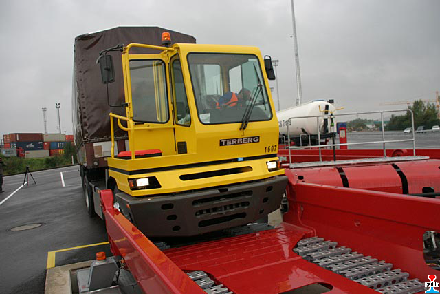Die Telberg - Jockey - Zugmaschinen besorgen das Beladen / Entladen der LKW-Sattelanhängern - Les tracteurs jockey "Terberg" procèdent au chargement / déchargement des semi-remorques (Photos: 10.9.2007 jmo)