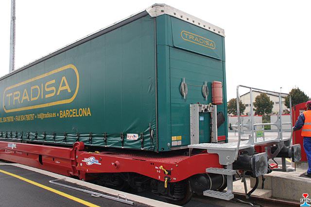 Après réglage des nouveaux systèmes au sol implantés sur la plate-forme, le déchargement des 2 semi-remorques transportées par Lorry- Rail aura lieu mardi 3 avril à 10 h sur la plateforme LORRY-RAIL du Boulou.
