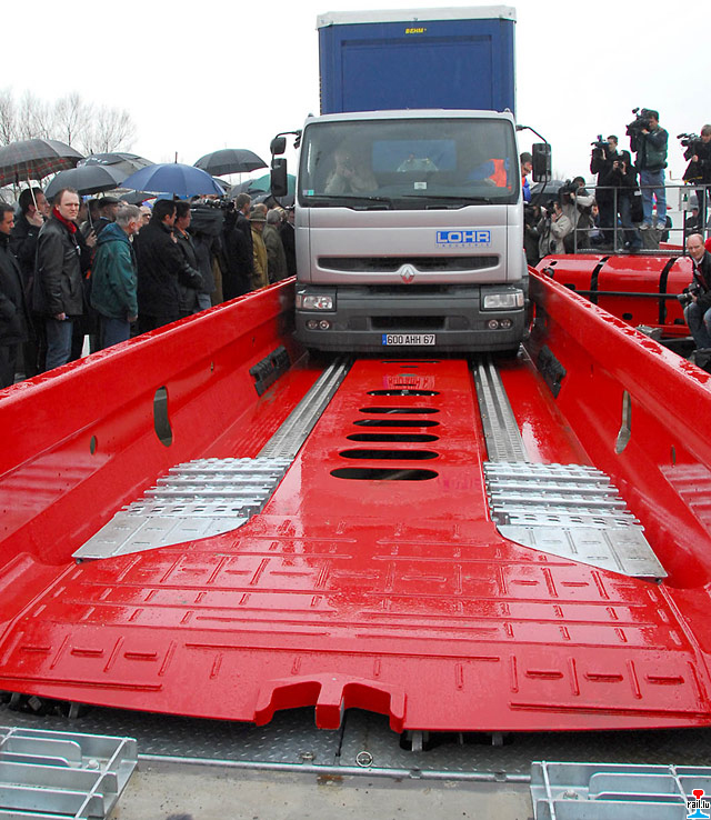 Am 29.3.2007 fand die erste Fahrt der Eisenbahnautobahn Perpignan - Luxemburg statt. Die Eisenbahnautobahn Perpignan - Luxemburg (1050 km) erlaubt den Transport von Standard-LKW-Sattelanhängern auf der Schiene, ohne Zugmaschine und ohne LKW-Fahrer (im Gegensatz zur "Rollenden Landstraße", wo Zugmaschine und LKW-Fahrer mitfahren müssen). Die Züge benutzen spezielle „Modalohr“ - Tiefladewaggons, von denen jeder mit 2 schwenkbaren Schalen ausgestattet ist, die ein problemloses Auf- und Wegfahren der Zugmaschine ermöglichen. Ein kompletter Zug besteht aus 20 Spezialwagen, die jeweils 2 Sattelanhänger befördern können (d.h. pro Fahrt können 40 nicht begleitete Sattelanhänger befördert werden). Die LORRY-RAIL - Züge werden mit SNCF-E-Loks des Typs BB 26.000 bespannt. In einer ersten Phase ist der Transport von 30.000 Anhängern pro Jahr vorgesehen. Neben wirtschaftlichen Vorteilen (keine Spritkosten, keine Mautkosten, keine Fahrerkosten, weniger Abnutzung am Fahrzeug, usw.) erlaubt diese Struktur eine Einsparung von bis zu 24.000 t CO2 Ausstoß (d.h. 80% weniger CO2 Ausstoß als der Transport auf der Straße). Weitere Vorteile sind die erlaubte Maximallast von 44 t (17% mehr als normalerweise erlaubt), sowie die Möglichkeit von Transporten 7 Tage pro Woche (Fahrverbote an Sonn- und Feiertagen gibt es hier nicht). Der Durchschnittspreis soll um 900 Euro pro Anhänger und pro Fahrt liegen.