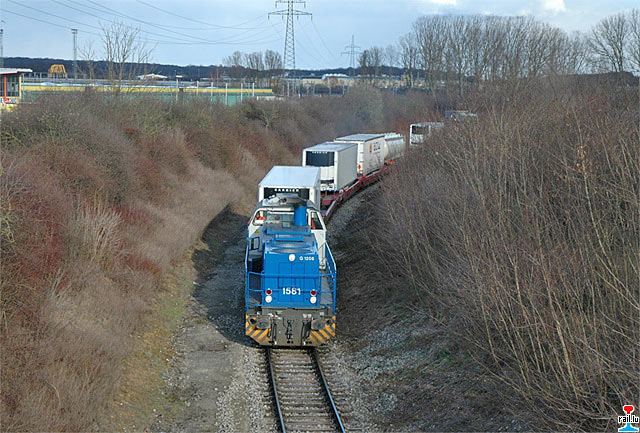 Locomotive CFL Cargo 1581 avec une demi-rame Lorry - Rail à Bettembourg (Photo: 5.3.2008 Mike Wohl)