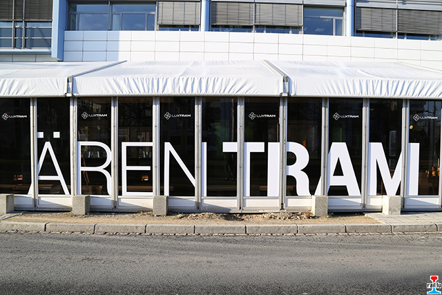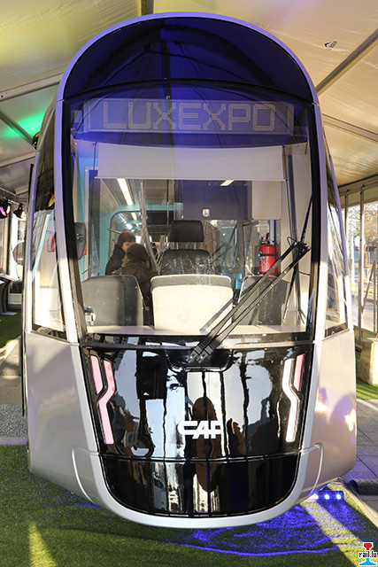 Ären Tram - Présentation de la maquette grandeur nature du tramway LUXTRAM (CAF) exposée à Luxembourg-Kirchberg, devant la numéro 45, avenue J.F. Kennedy (devant l’immeuble de la Banque de Luxembourg) (Photos: 9.12.2015 jmo)