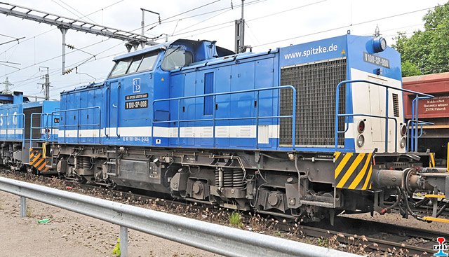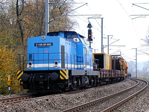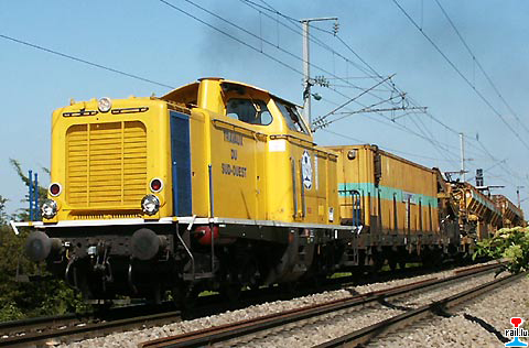 Sie wurde bei Alstom Lokomotiven Service (ALS) in Stendal u.a. durch den Einbau eines 12-Zylinder-Viertakt Caterpillar-Motors vom Typ 3512B mit einer Leistung von 1305 kW modernisiert. Diese V100 wird zusammen mit den Spitzke-Loks G1206-SP-021 & 022 (Typ Vossloh G1206) auf einer Gleiserneuerungsbaustelle auf der Strecke Esch-Bettemburg zum Einsatz kommen. (Photo 13.06.2010 Francis Wagner)