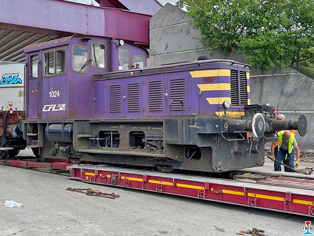 Transfert vun den ex-CFL Lokotrakteren 1023 an 1024 vun der Stad op Péiteng. Déi zwou Lokomotiven geheieren elo der Associatioun 1604 Classics. (Photos: 28.6.2022 Christian Schmitz)