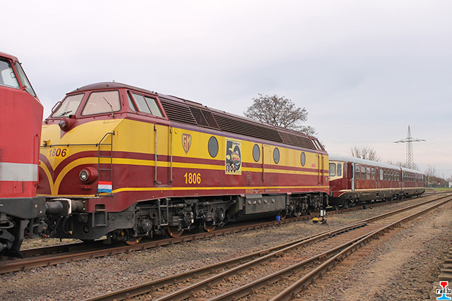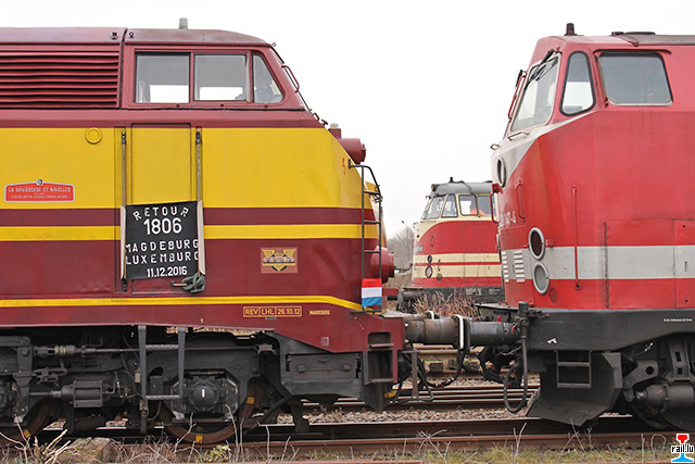 D'1806 mam 208 zu Magdeburg den Daag virun der Iwwerfeierung. D'Lok 219-147 huet d'Iwwerfeierung vun Magdeburg bis Ehrang gemaach. Duerno huet d'CFL-CARGO d'Relève bis an d'Stad geholl. Den 13.12 gett d'Material vun der 1604 vun der Stad op Péiteng gezunn. Départ géint 10h00 an der Stad. (Photos: Christian Schmitz)