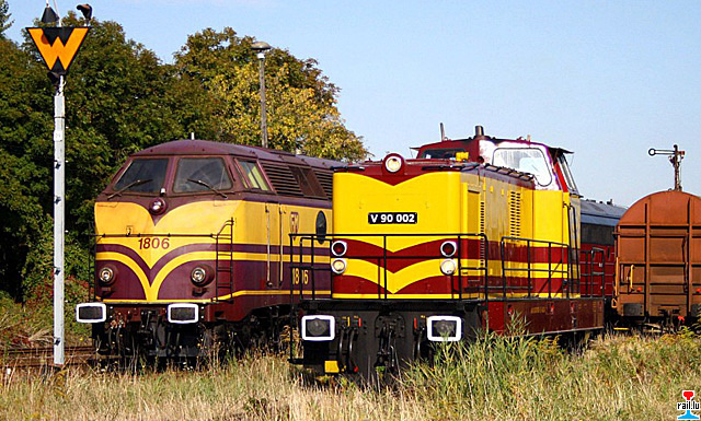 Power Rail (ex - CFL cargo) 1806 nach Revision, und A.V.G. - Ascherslebener Verkehrsgesellschaft mbH, Aschersleben V90 002 in CFL-Look bei Event in Stassfurt (Photos: