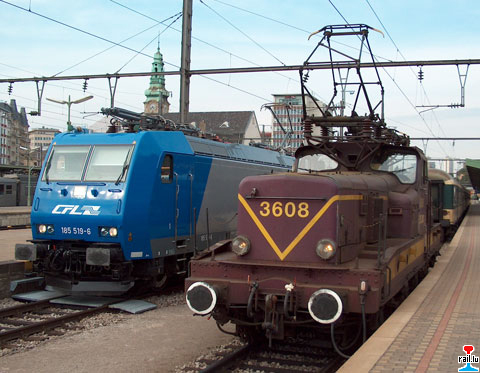 E-Lok CFL 185 519-6 und CFL 3608 im Bahnhof