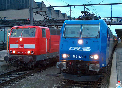 DBAG 181 219-7 und CFL-Mietlok 185 522-0 im Bahnhof