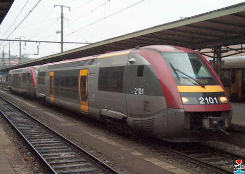 CFL Dieseltriebwagen CFL 2103 und 2101 im Bahnhof