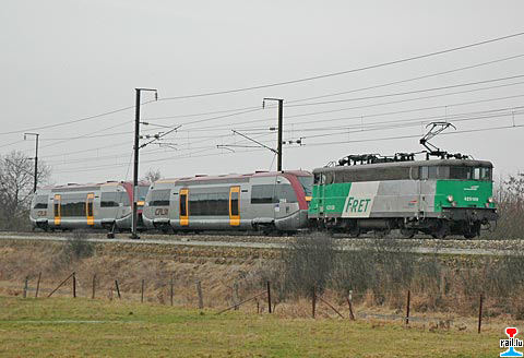 La locomotive SNCF 25109 transfère les autorails ex-CFL 2103 et 2104 en France (Photo: 25.2.2006 Mike Wohl)