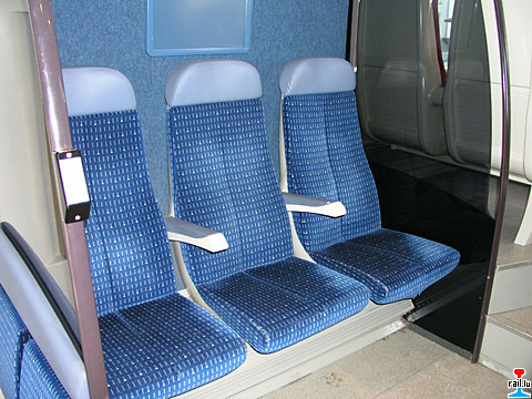 | Equipements / Ausstattung: | climatisation, des portes très larges à seuil bas, un emplacement pour fauteuils roulants, un compartiment pour vélos, 1 WC, Memor II, annonce automatique des stations, EAS (Equipement Agent Seul) à l'aide de caméras fixées sur ses flancs pour fermeture des portes |