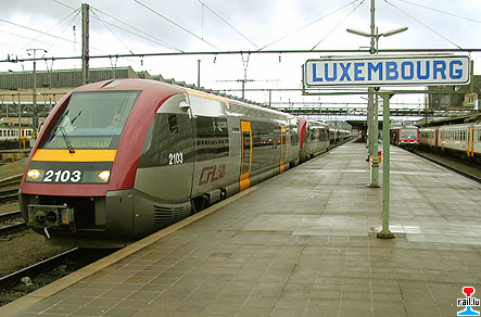 Autorails CFL 2106 et 2102 à Luxembourg (Photo: 5.3.2004 Mike Wohl)
