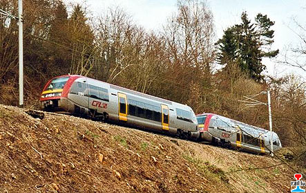 Autorails diesel CFL 2104 et 2105 à Cents (Photo: 17.3.2001 Marc Theis)