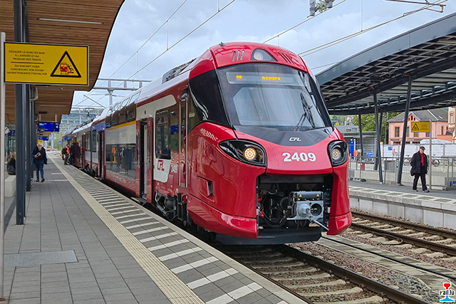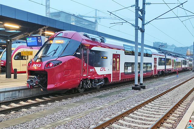 Den neien CFL Coradia 2413 an der Stater Gare fir op Waasserbëlleg (Photos: 17.12.2024 Romain Schwartz)