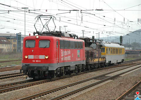 DB 110 169 mit CFL 3602 auf Überführungsfahrt nach Augsburg in Merzig (Foto: 16.4.2006 Mike Wohl)