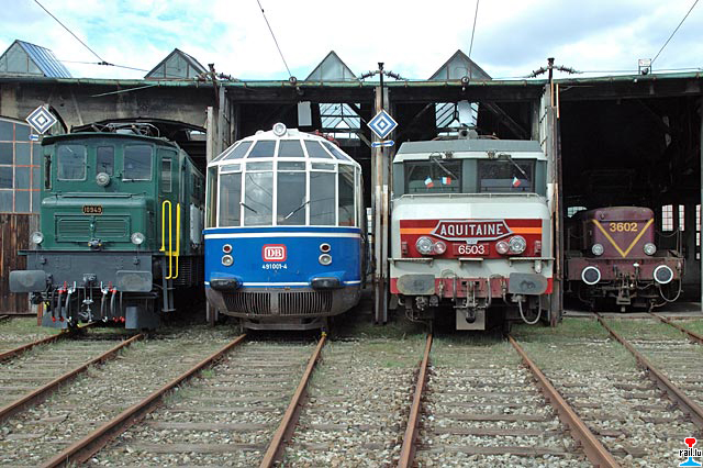 Die ex-SBB-E-Lok Ae 4/7 10949 der SBB Historic, der ex-DB E-Triebwagen "Der Gläserne Zug" 491 001-4, die ex-SNCF-E-Lok 6503 TEE "AQUITAINE", die ex-DB-E-Lok E 91 99 / 191 099-1