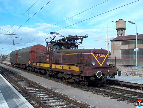 E-Lok 3608 mit einem Güterzug aus Bettemburg in Düdelingen-Werk (Photo: