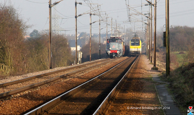 Die CFL 3608 vor dem Zug Trm 36008 in Esch/Alzette (Photos: 31.01.2014 Francis Wagner)