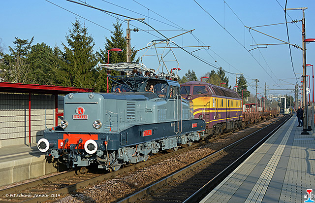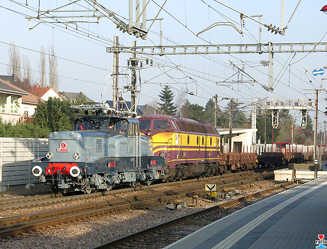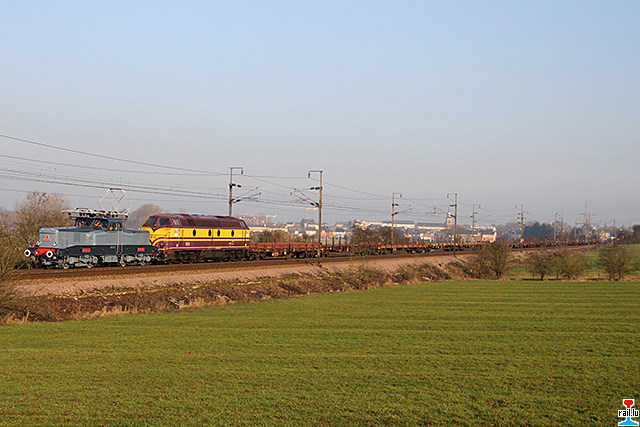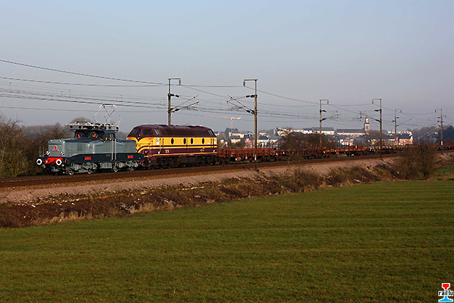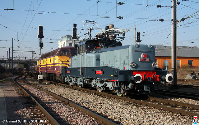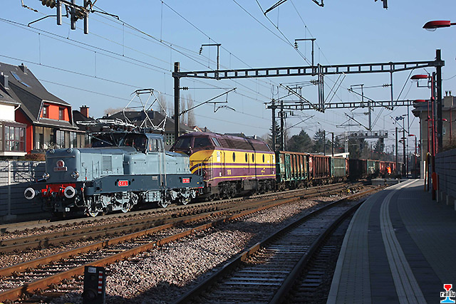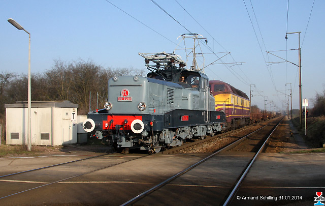 Trm 36008 Bu-Bt - Probezug mit CFL E-Lok 3608 + Diesellok CFL cargo 1818 (Photo: 31.1.2014 Armand Schilling)