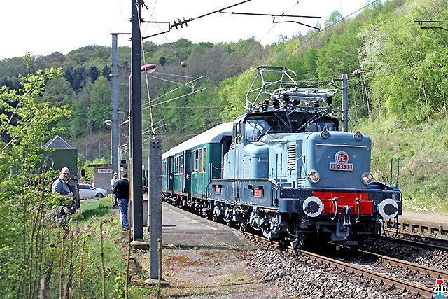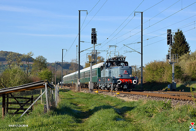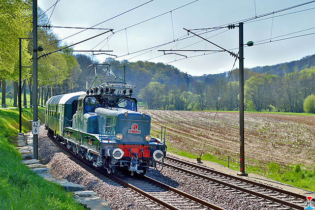Train spécial GAR avec la locomotive électrique 3608 près de Mersch (Photos: 21.4.2014 Willy Hentges)