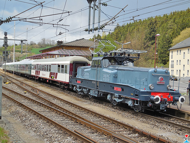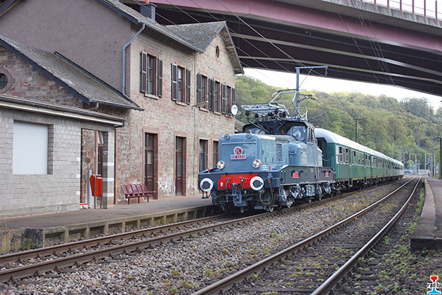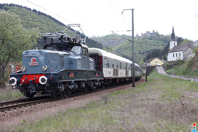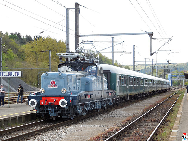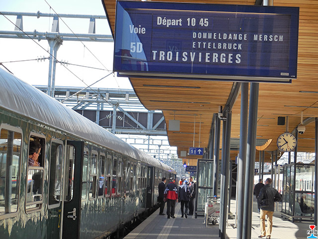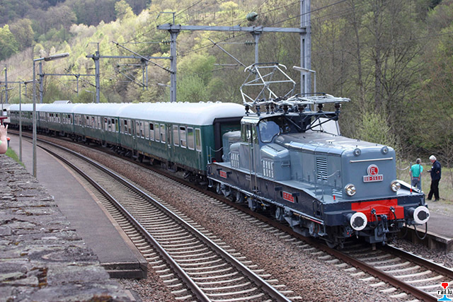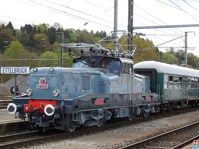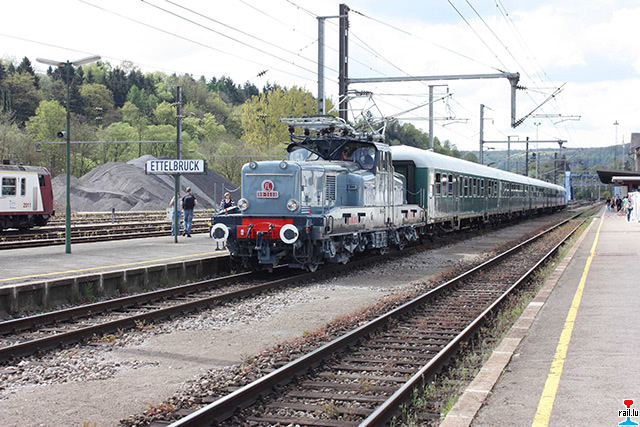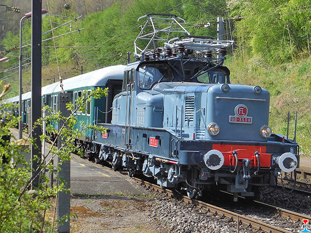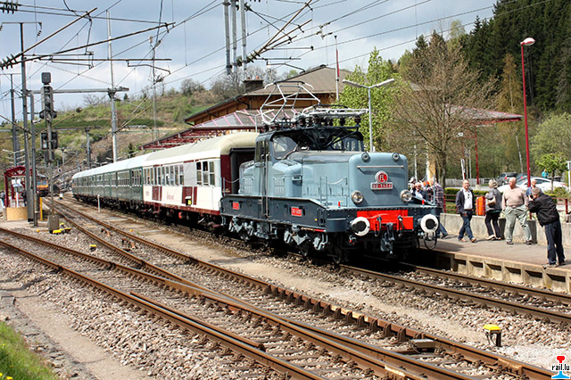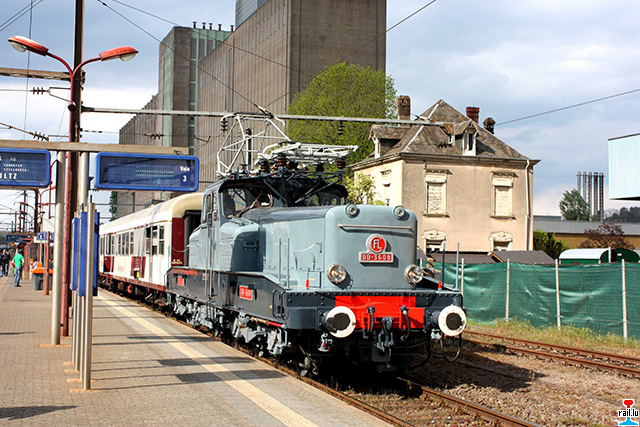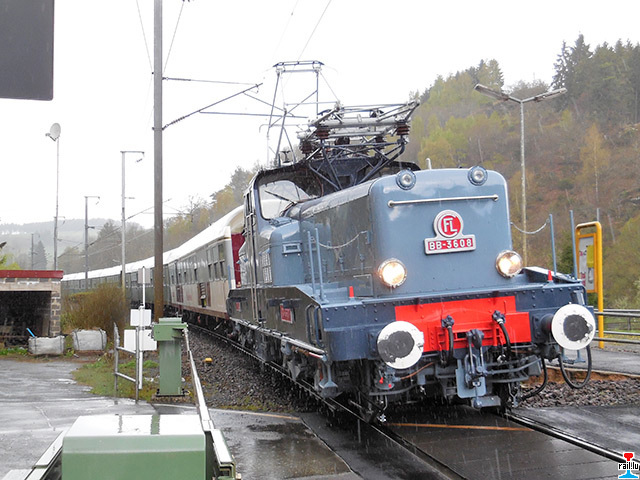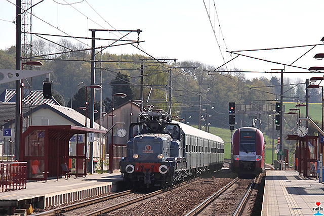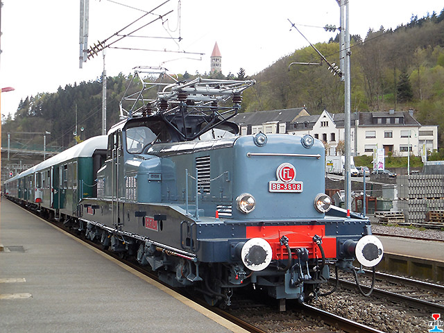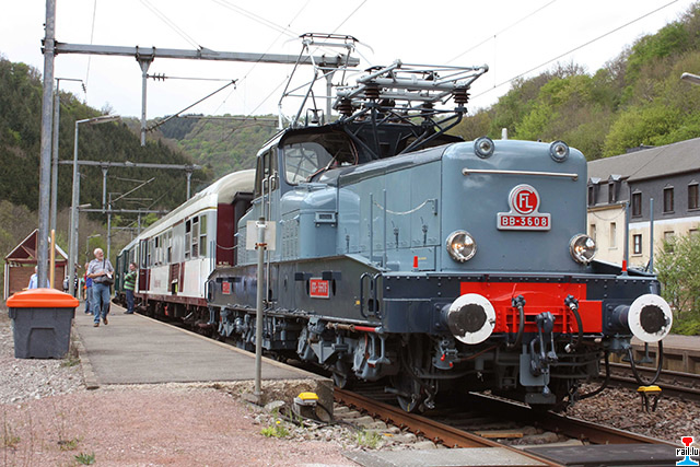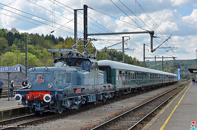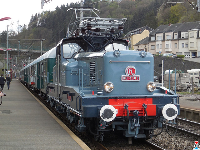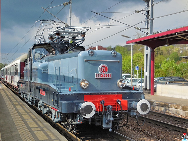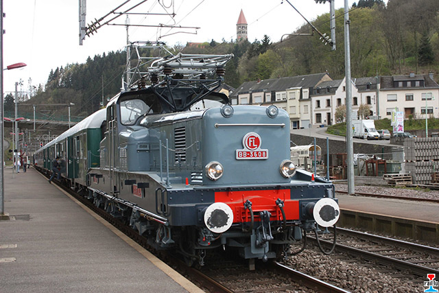 ex-CFL BB-3608 mit Sonderzug bei Halt im Bf Ettelbrück (Photo: 21.4.2014 Vital Schank)