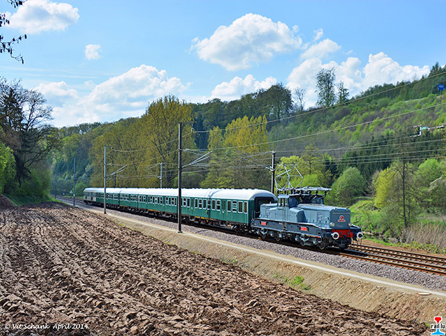 ex-CFL BB-3608 mit Sonderzug bei Colmar-Berg (Photo: 21.4.2014 Vital Schank)