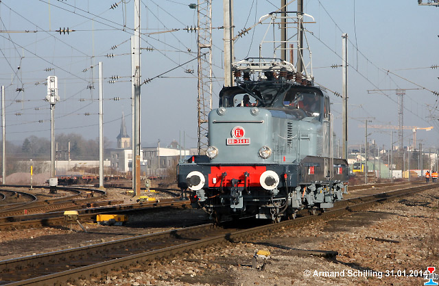 Ankunft Bt CFL E-Lok 3608-Hlp auf dem Weg zum Trm-36009 - Bt-Bu (Photo: 31.1.2014 Armand Schilling)
