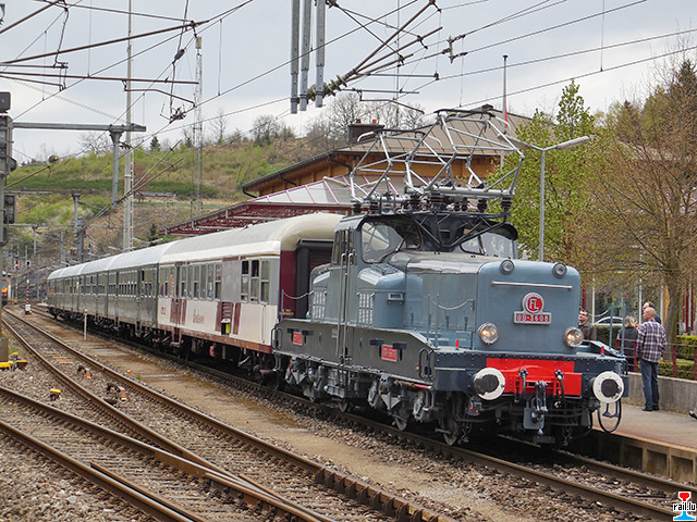 Train spécial GAR avec la locomotive électrique 3608 ä Essingen (Photos: 21.4.2014 Willy Hentges)