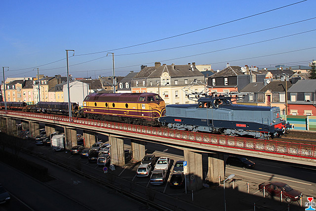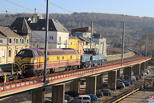 Probefahrt der 3608 mit CFL cargo 1818, hier in Esch/Alzette (Photo: 31.1.2014 Christian Schmitz)