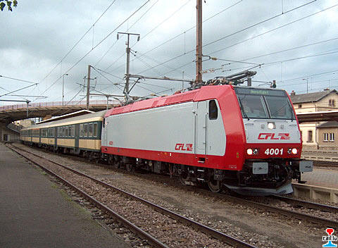 CFL E-Lok 4002 mit Wegmannwagen im Bahnhof