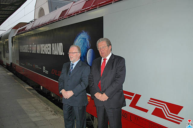 C’est, dès lors, avec un grand honneur et un très grand plaisir que nous nous associons aux réjouissances collectives qui accompagnent l’accession au trône du nouveau Grand-Duc, déclarent Jeannot Waringo, Président du Conseil d’Administration des CFL et Marc Wengler, Directeur Général des CFL.