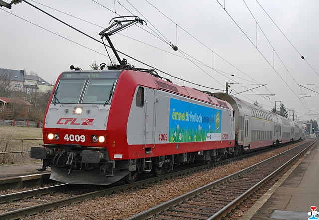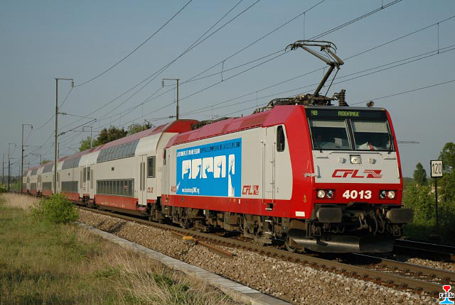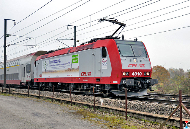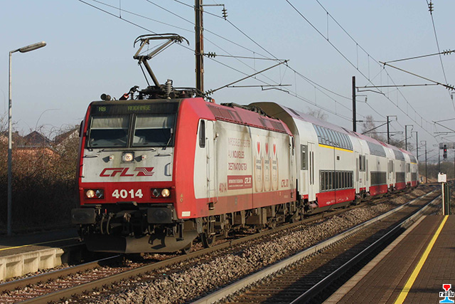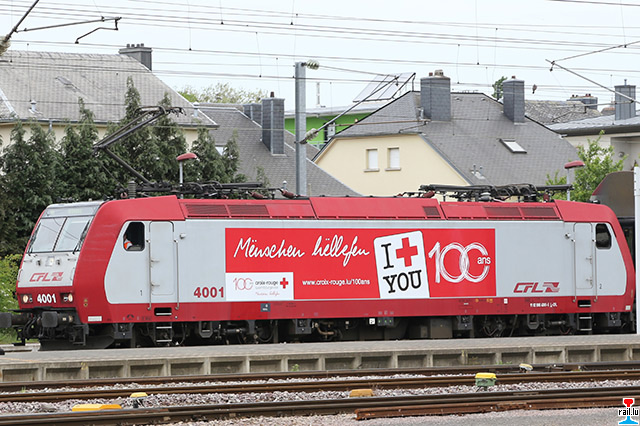 CFL 4001 avec pub "100 Joër Croix rouge luxembourgeoise" à Bettembourg (Photos: