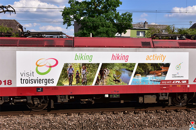 Nouvelle publicité sur la locomotive CFL 4018: visit troisvierges - biking - hiking - activity (Photo: 1.6.2017 Mike Wohl)