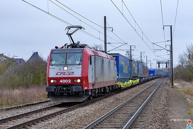 Zanter dem 21.01.2020 gëtt et eng nei Verbindung fir Semi-remorquen a Container fir d’Transportfirma LKW Walter tëscht Kiel (D) a Beetebuerg. Den Zuch fiert DI-DO-SA an der Mëttestonn op Beetebuerg a géint 17:30 vu Beetebuerg fort. Tëscht Ehrang a Beetebuerg iwwerhëlt CFL-Cargo deen Zuch. D’Foto weist den Zuch zu Bierchem um Krop vun der 4002. (Fotos: 23.01.2020 Nico Berté)