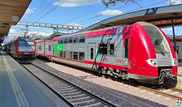 D'4007 an d'2218 mam neien CFL-Logo an der Stater Gare (Photos: 1.6.2022 Romain Schwartz)