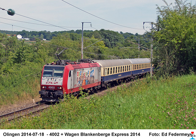 CFL 4002 mit Wagen des Blankenberge Express 2014 in Olingen (Photo: 18.7.2014 Ed Federmeyer)