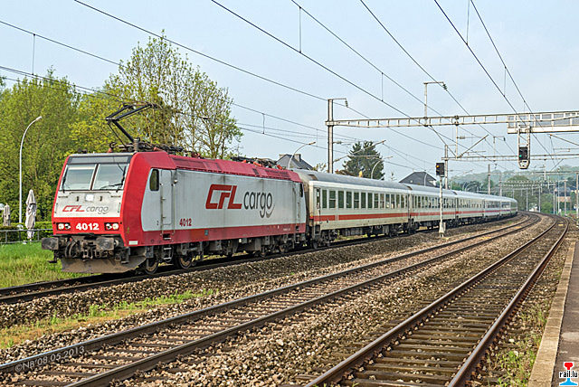 CFL 4012 avec logo CFL cargo assurant la traction de l'IC 133 à Wecker (Photo: 08.05.2013, Nico Berté)