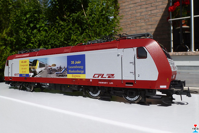 Locomotive électrique CFL 4017 - Pub 40 Joër Groupement des Amis du Rail - 35 Joër Luxembourg Blankenberge Express | Roco - 73595 - 2015 série strictement limitée à 300 exemplaires |