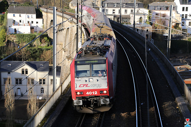 CFL cargo E-Lok 4012 bei der Einfahrt in den Bahnhof Luxemburg (Photo: