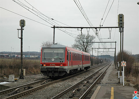 CFL Dieseltriebwagen 628 506 als RB 5738 in Mamer (Photo: 12.2.2006 Mike Wohl)