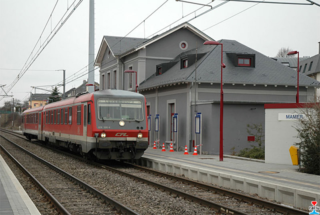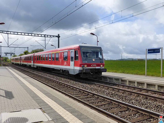 CFL-autorail 628-505-7 passe la gare de Roodt-Syre