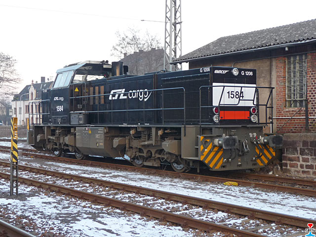 La 1584 CFL Cargo manoeuvre des wagons en gare d'Apach (Photo: 9.1.2012 Seb. Steiner)