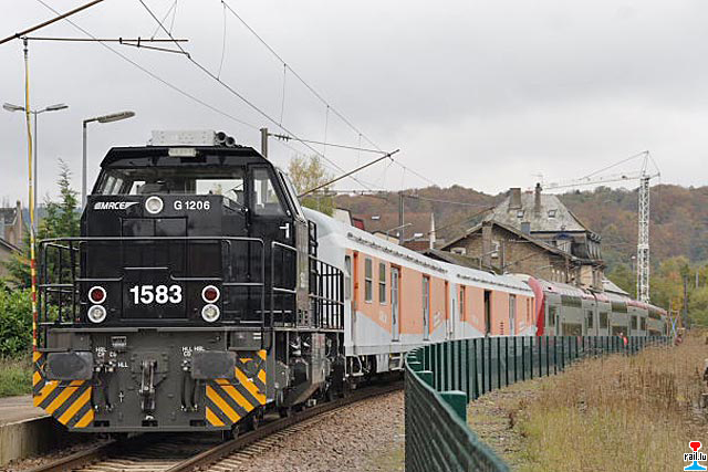 La 1583 passe à Schifflange avec une courte rame (Photo: 21.2.2012 Seb Steiner)