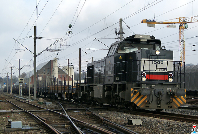 La locomotive Diesel CFL cargo 1586 assurant le train 47226/7 pour Hagondange, de passage à Apach (Photos: 27.1.2011 Séb Steiner)